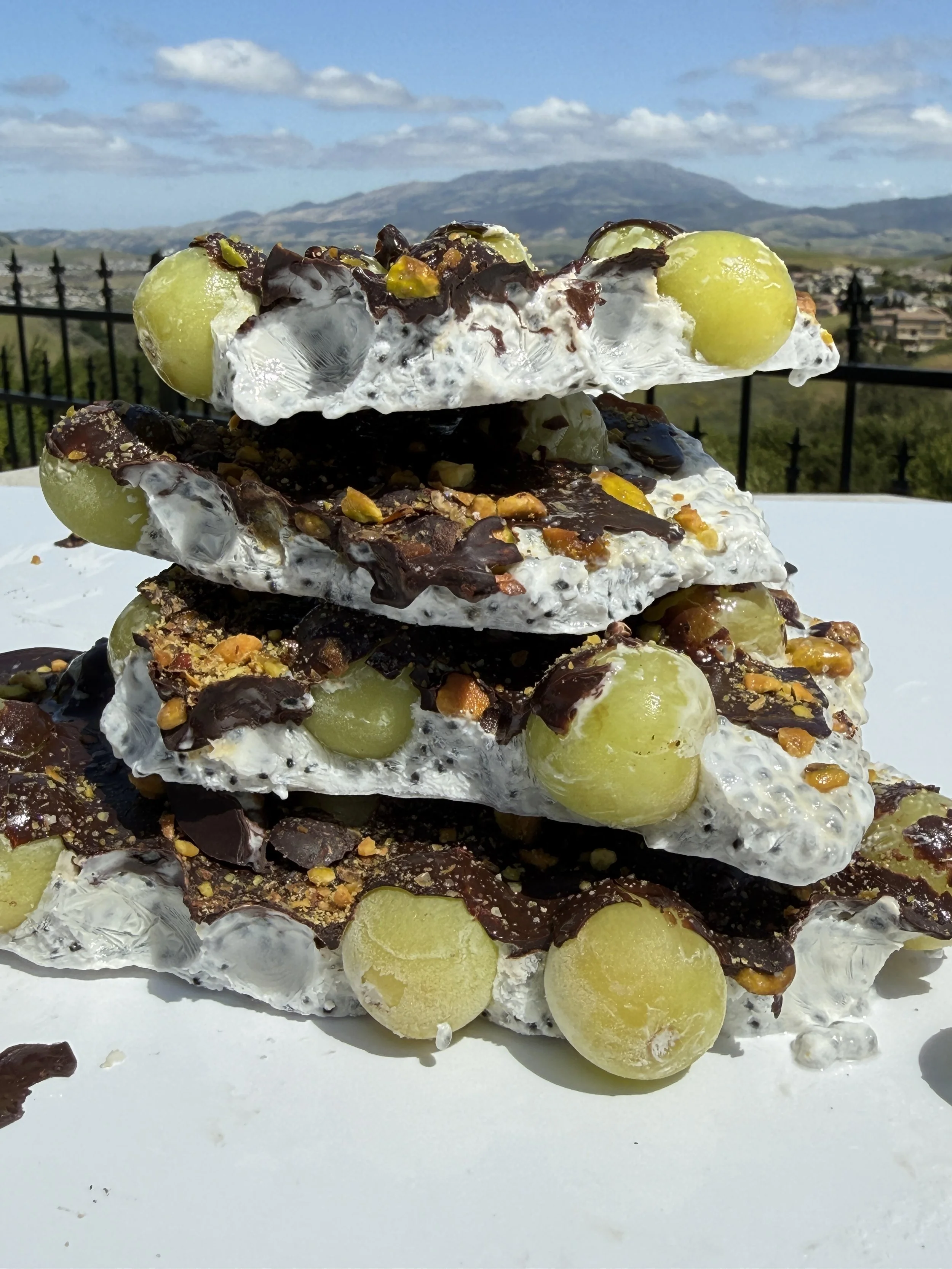Natural sweetness from grapes with balanced fats from chocolate and pistachios