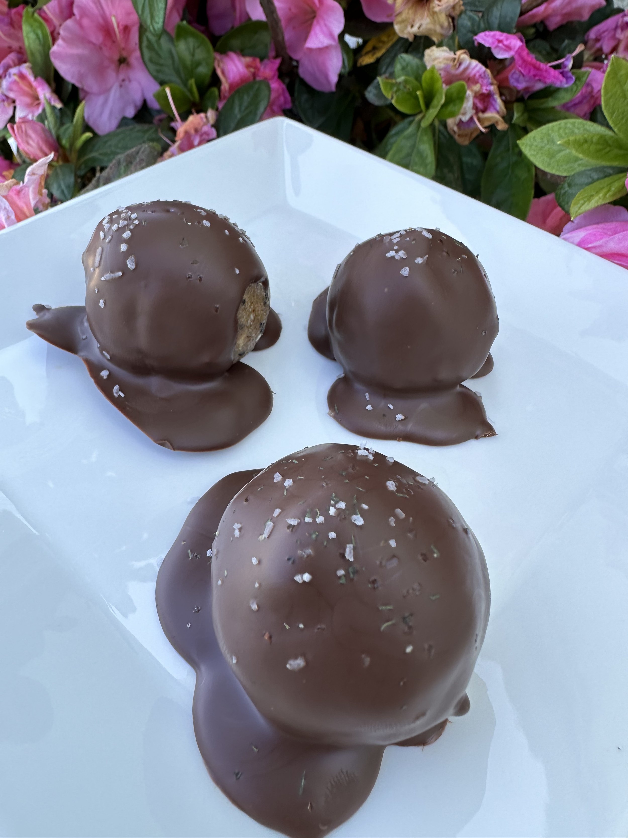 Smash banana with the back of a fork and crack the eggs on top. Mix in Zen Basil Seeds, pumpkin, dates, and all wet ingredients. Mix well and add the dry ingredients after. Mix again.